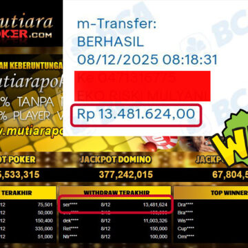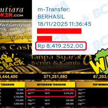 Bukti Withdraw ( 8,419,252,- ) Member Setia MutiaraPoker