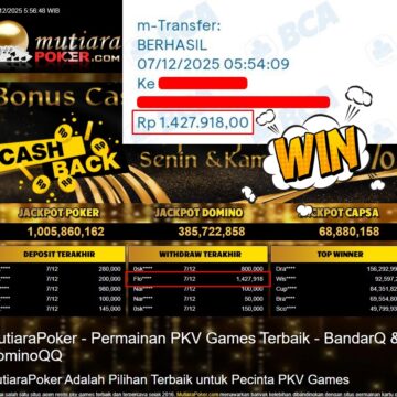 Bukti Withdraw (1.429.500 ,- ) Member Setia MutiaraPoker