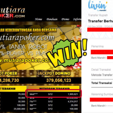 Bukti Withdraw ( 1.900.000- ) Member Setia MutiaraPoker