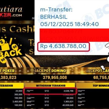 Bukti Withdraw ( 7.633.500,- ) Member Setia MutiaraPoker