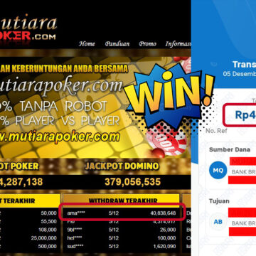 Bukti Withdraw ( 44.766.846,- ) Member Setia MutiaraPoker