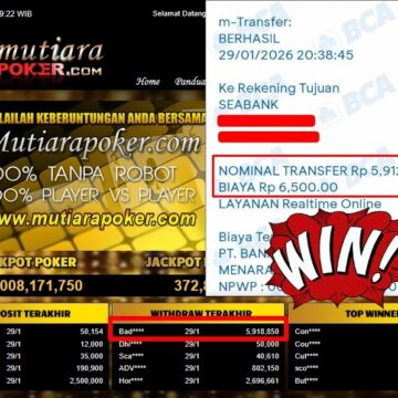 Bukti Withdraw ( 5.000.999,- ) Member Setia MutiaraPoker