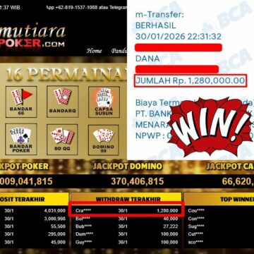 Bukti Withdraw ( 1.280.000,- ) Member Setia MutiaraPoker
