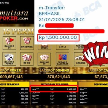 Bukti Withdraw ( 1.500.000,- ) Member Setia MutiaraPoker