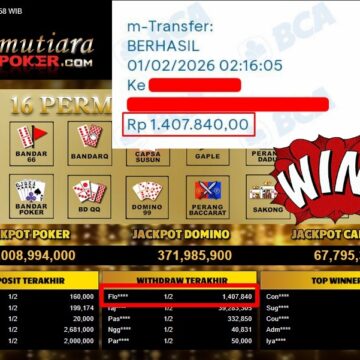 Bukti Withdraw ( 1.407.840,- ) Member Setia MutiaraPoker