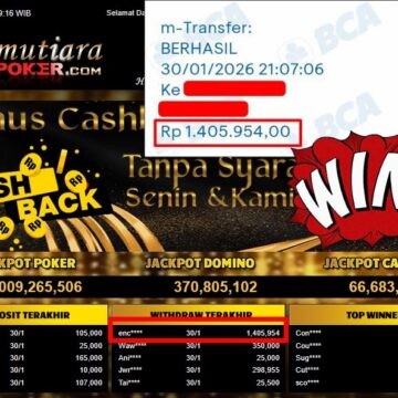 Bukti Withdraw ( 1.400.000,- ) Member Setia MutiaraPoker