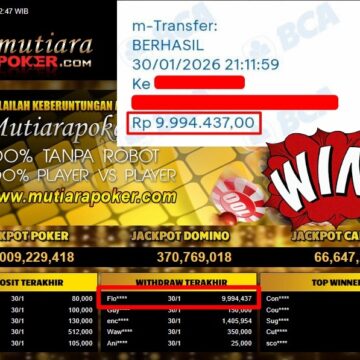 Bukti Withdraw ( 9.994.437,- ) Member Setia MutiaraPoker