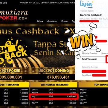Bukti Withdraw ( 1.303.000,-) Member Setia Mutiarapoker