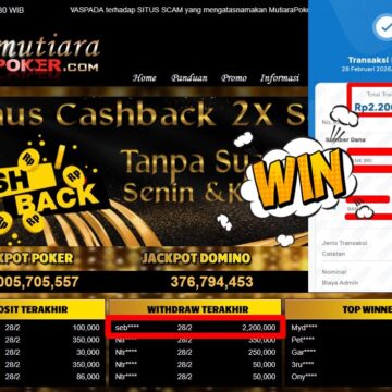 Bukti Withdraw ( 2.200.000,-) Member Setia Mutiarapoker