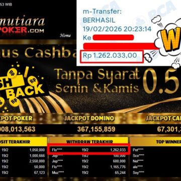 Bukti Withdraw ( 1.262.033,-) Member Setia Mutiarapoker