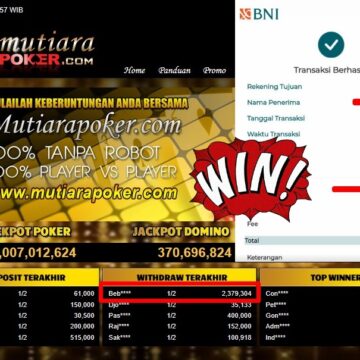 Bukti Withdraw ( 2.379.304,- ) Member Setia MutiaraPoker