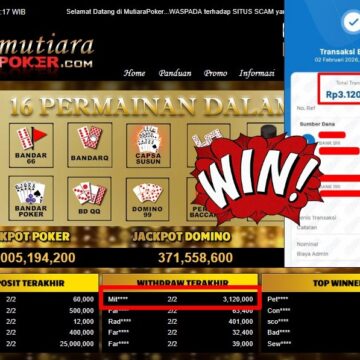 Bukti Withdraw ( 3.120.000,- ) Member Setia MutiaraPoker