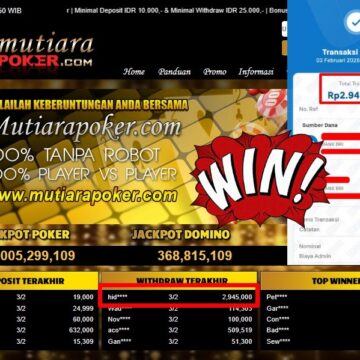 Bukti Withdraw ( 2.945.000,- ) Member Setia MutiaraPoker