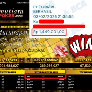 Bukti Withdraw ( 1.449.001,- ) Member Setia MutiaraPoker