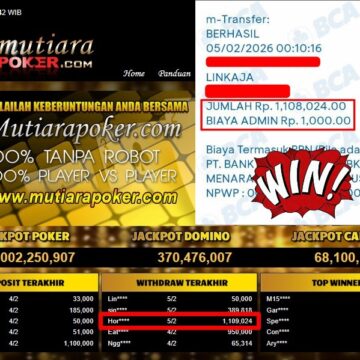 Bukti Withdraw ( 1.109.024,- ) Member Setia MutiaraPoker