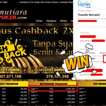 Bukti Withdraw ( 1.566.362,- ) Member Setia MutiaraPoker