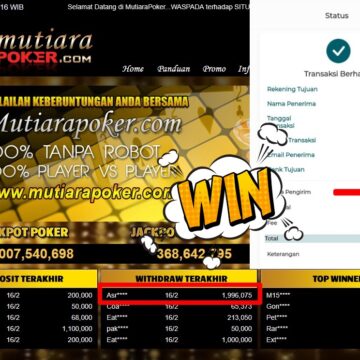 Bukti Withdraw ( 1.996.075,-) Member Setia Mutiarapoker