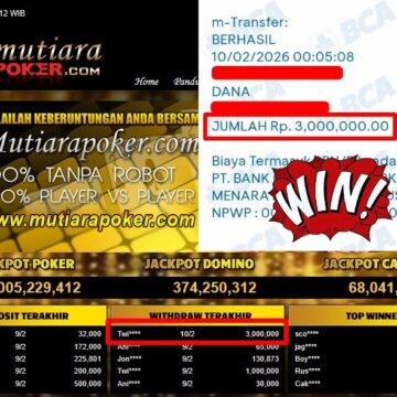 Bukti Withdraw ( 3.000.000,- ) Member Setia MutiaraPoker