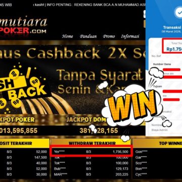 Bukti Withdraw ( 1.756.500,-) Member Setia Mutiarapoker