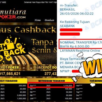 Bukti Withdraw ( 1.010.000,-) Member Setia MutiaraPoker