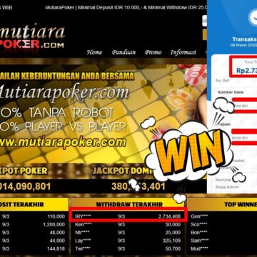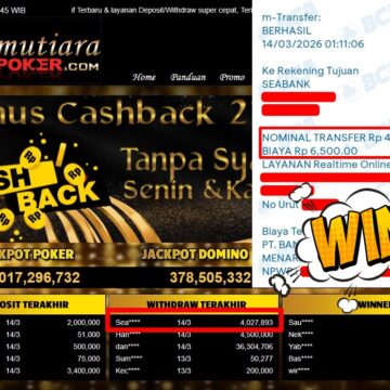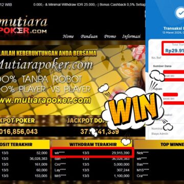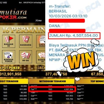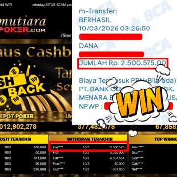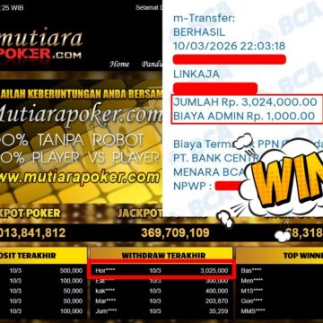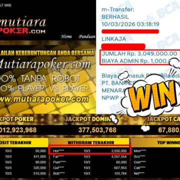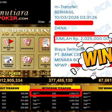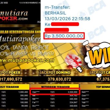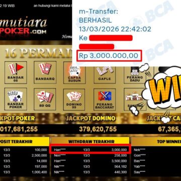 Bukti Withdraw ( 3.010.000,-) Member Setia MutiaraPoker