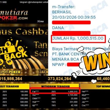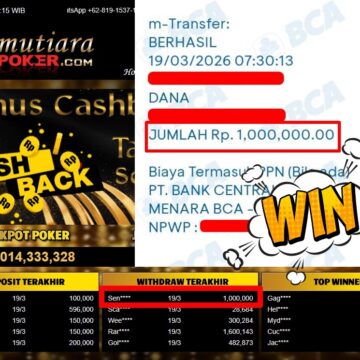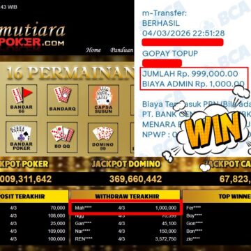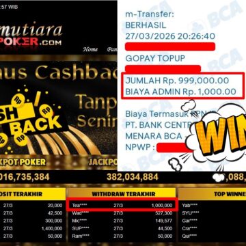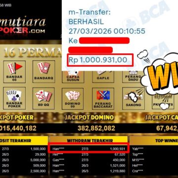 Bukti Withdraw ( 1.000.000,-) Member Setia MutiaraPoker