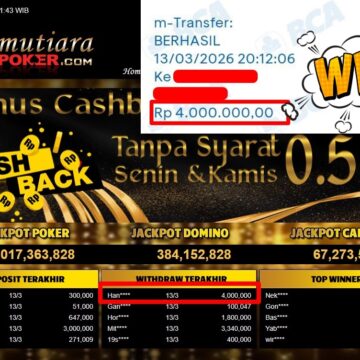 Bukti Withdraw ( 5.778.000,-) Member Setia MutiaraPoker
