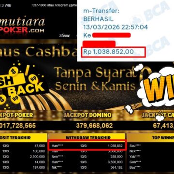 Bukti Withdraw ( 1.622.000,-) Member Setia MutiaraPoker