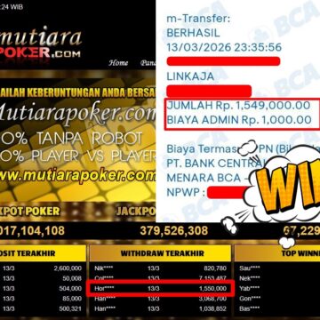 Bukti Withdraw ( 13.153.226,-) Member Setia MutiaraPoker