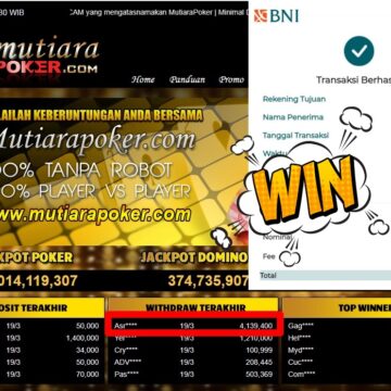 Bukti Withdraw ( 3.935.000,-) Member Setia MutiaraPoker