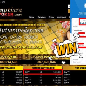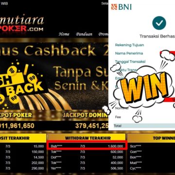 Bukti Withdraw ( 1.600.000,-) Member Setia MutiaraPoker
