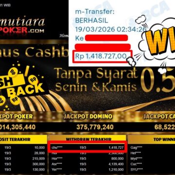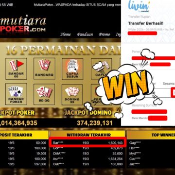 Bukti Withdraw ( 1.701.500,-) Member Setia MutiaraPoker