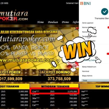 Bukti Withdraw ( 1.906.500,-) Member Setia MutiaraPoker