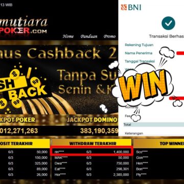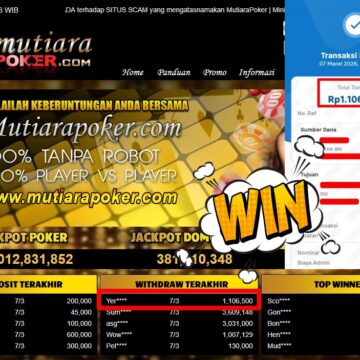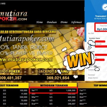 Bukti Withdraw ( 1.453.500,-) Member Setia MutiaraPoker