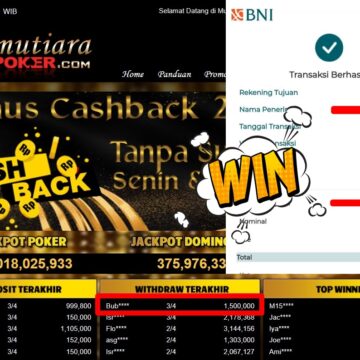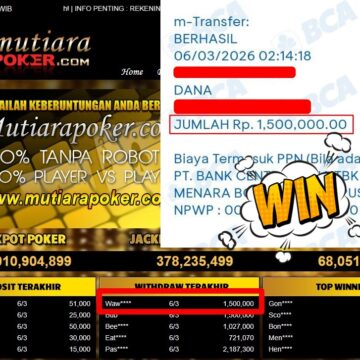 Bukti Withdraw ( 1.500.000,-) Member Setia MutiaraPoker