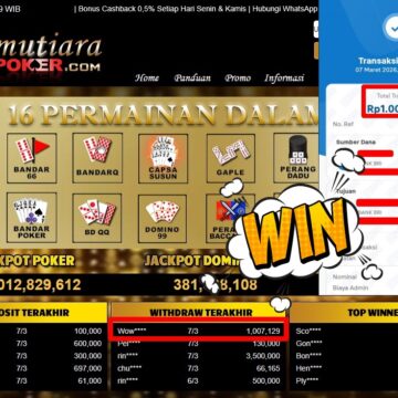 Bukti Withdraw ( 2.907.000,-) Member Setia MutiaraPoker