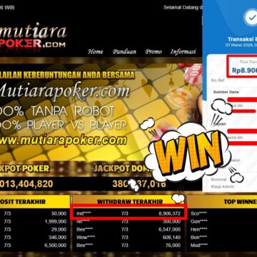 Bukti Withdraw ( 9.263.000,-) Member Setia MutiaraPoker