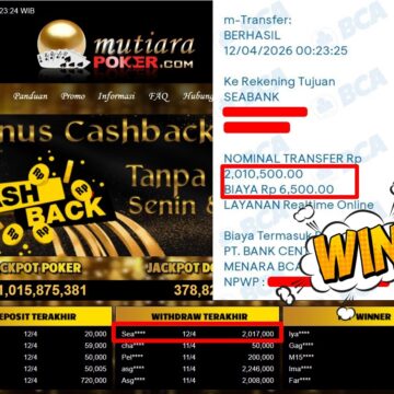 Bukti Withdraw ( 2.012.000,-) Member Setia MutiaraPoker
