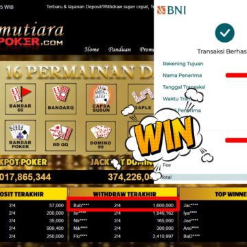 Bukti Withdraw ( 1.600.783,-) Member Setia MutiaraPoker