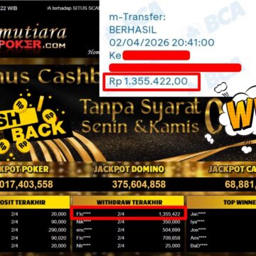 Bukti Withdraw ( 1.355.422,-) Member Setia Mutiarapoker