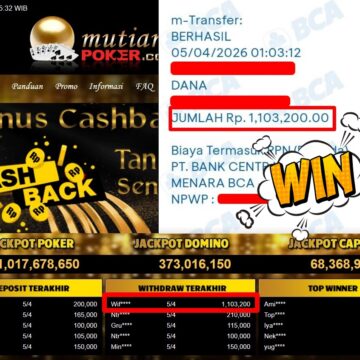 Bukti Withdraw ( 5.255.000,-) Member Setia MutiaraPoker