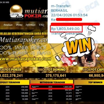 Bukti Withdraw ( 1.857.880,-) Member Setia MutiaraPoker