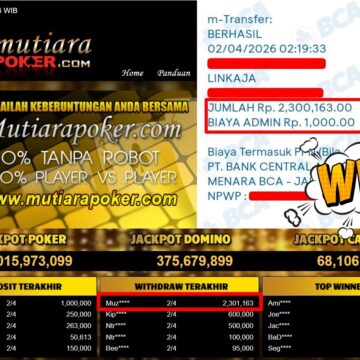 Bukti Withdraw ( 2.200.000,-) Member Setia MutiaraPoker