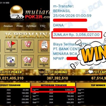 Bukti Withdraw ( 1.047.100,-) Member Setia MutiaraPoker