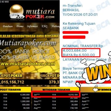 Bukti Withdraw ( 4.000.000,-) Member Setia MutiaraPoker