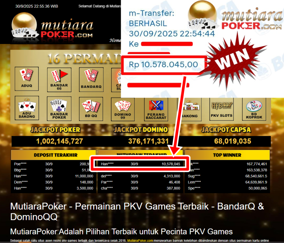 Bukti Withdraw ( 10,578,045,- ) Member Setia MutiaraPoker