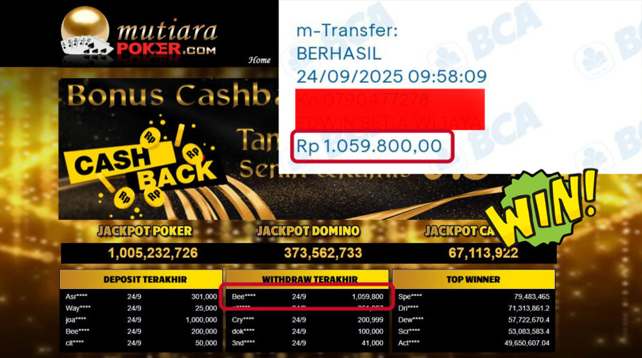 Bukti Withdraw ( 1,059,800,- ) Member Setia MutiaraPoker