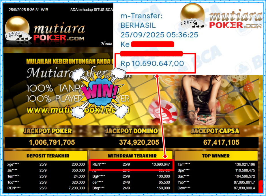 Bukti Withdraw ( 10,690,647,-) Member Setia Mutiarapoker