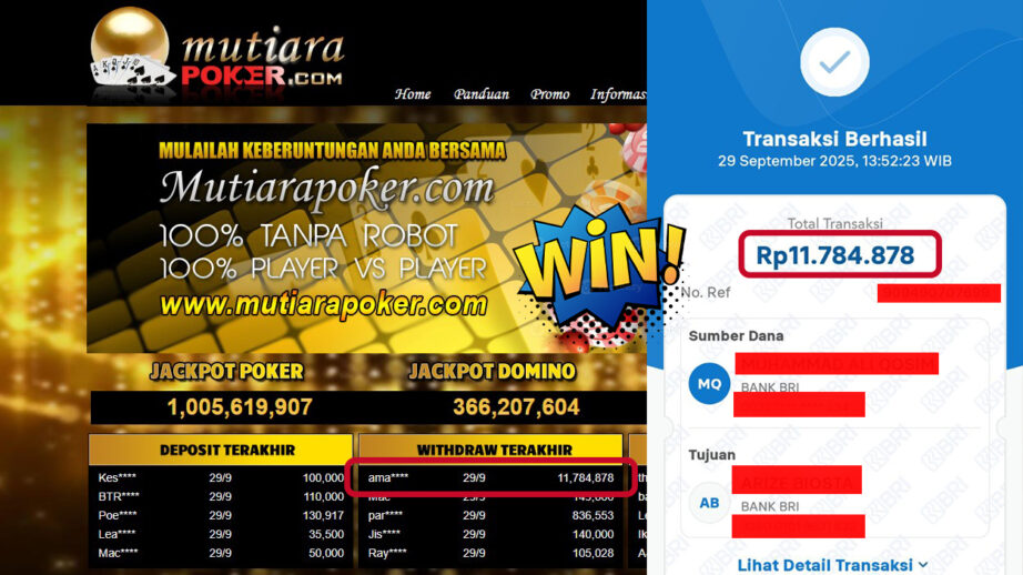 Bukti Withdraw ( 11,784,878,- ) Member Setia MutiaraPoker