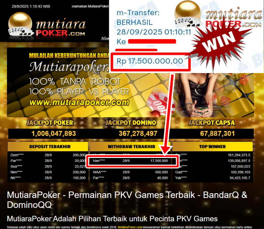 Bukti Withdraw ( 17,500,000,- ) Member Setia MutiaraPoker